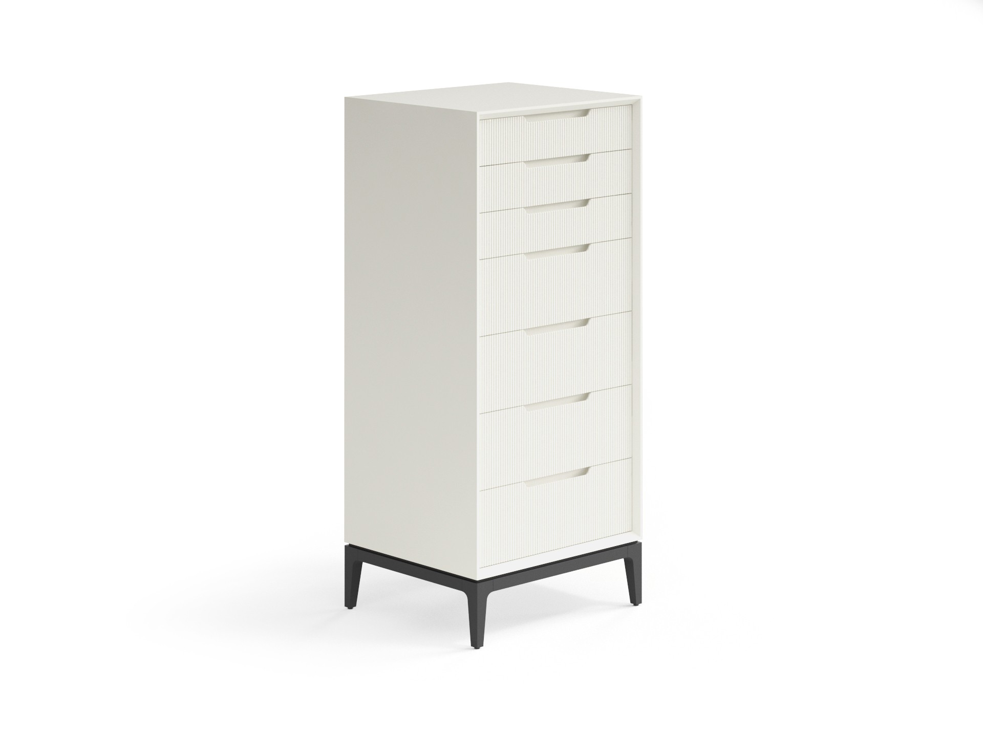 Изделие лаконичной формы внесёт в пространство спокойствие и надёжность, а рельефная фрезеровка на фасаде добавит индивидуальность. Благодаря скрытым направляющим выдвижных ящиков вид изделия остаётся безупречным всё время пользования. Количество циклов открывания и закрывания — 80 000. Это значит, что если вы будете пользоваться комодом дважды в день, изделие будет оставаться в идеальном рабочем состоянии и радовать вас примерно 55 лет.
