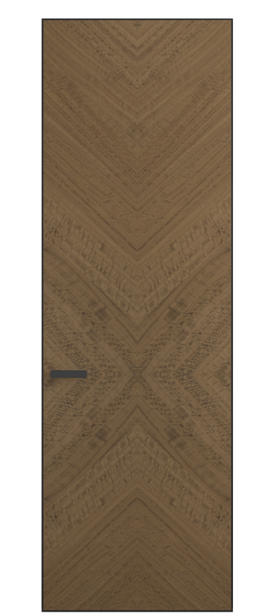 Полотно Rift в скрытом алюминиевом коробе становится полноценным элементом декора. В коллекции представлено 9 моделей дверей в высоте до 3 метров. Рисунок раскладки шпона варьируется от простого до сложного. «Рубашка» для каждого полотна подбирается вручную по цвету, текстуре и фактуре.