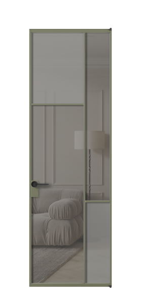 Дверь межкомнатная АЛПЛ041.10 АОТ Серый сатин матовое + Серый прозрачное. Цвет Алюминий оливковый тёмный. Материал Алюминий в эмали. Коллекция Mosaic. Картинка.