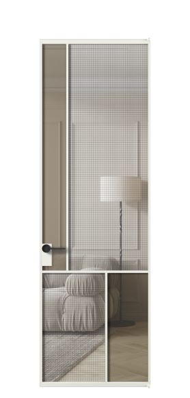 АЛПЛ041.20 Алюминий светло-серый Декоративное стекло с сеткой "Mesh silver", триплекс, 6 мм + Прозрачное бронзовое стекло, триплекс